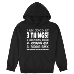 Add some fun to your BMXÂ wardrobe with this funny I AM GOOD AT 3 THINGS BMX design or give it as the perfect gift!